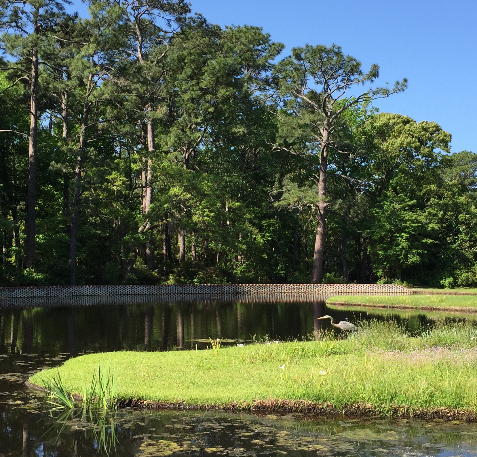 I was reminded by the gentle beauty and stillness of nature of the importance of balancing “being” and “doing”… The feathery green branches, dappled sunlight through the trees, pines reaching to the sun, heron elegantly strutting, water gently rippling… all “being” one with nature and God… Photos and reflection by Nancy L.
