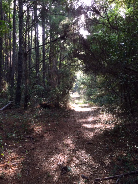 I had planned the path I was going to take—the service road off to the left. I had taken it before, liked the terrain. Soon I came upon a small opening in the side woods that was new to me; I had a choice to make. I crouched, stepped through the circular space; a primitive path surprisingly free of briars stretched before me. I walked forward, unsure where I was headed. No compass; no whistle in case of getting lost. A small clutch in my throat.