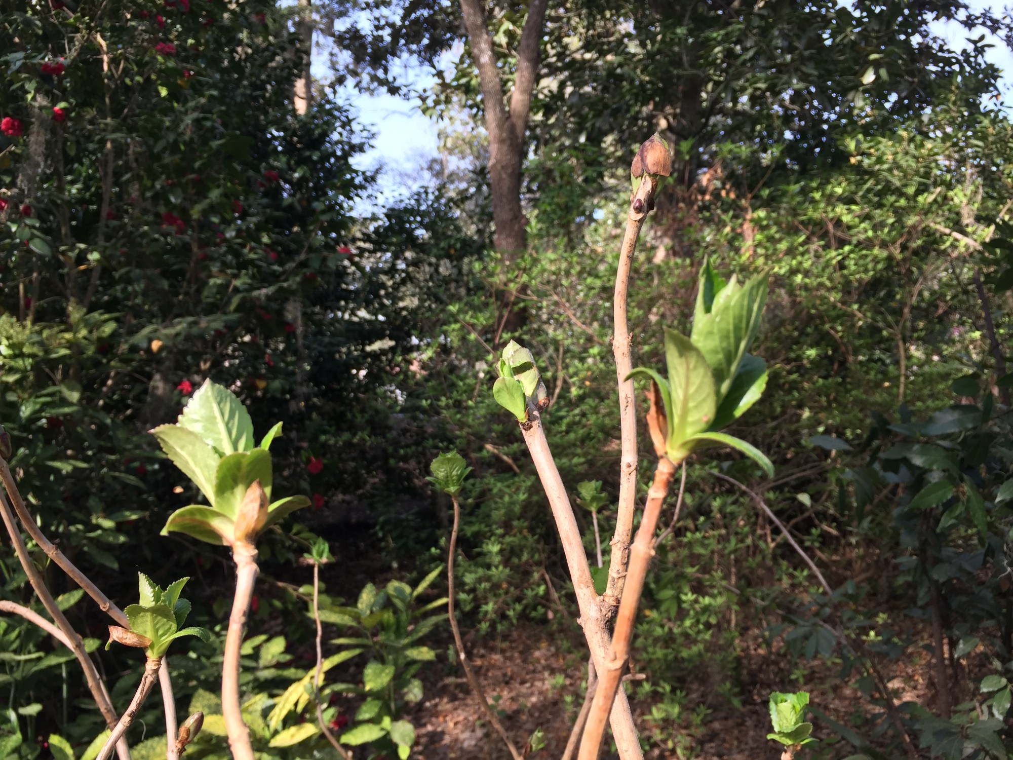 For much of the rest of my walk I was drawn to the new green growth everywhere. Although the flowers were glorious, the green buds, foliage and emerging leaves shouted to me of joy and the changes of the season. This cycle of seasons and change spoke to me through the newly fallen brown leaves of the live oaks as they mingled with new flower petals in the fountain waters and laid an earthen carpet to enrich the soil for future growth.
