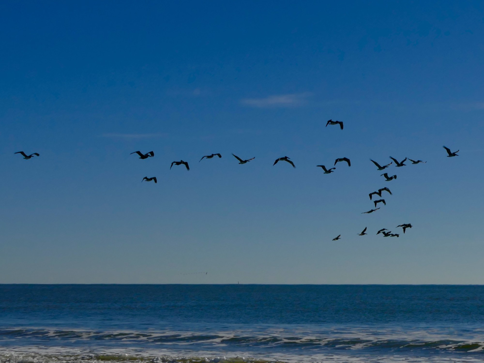 My intention for today was to feel lifted up and connected in community. This was easy to recognize in a group of pelicans flying south. What surprised me was one pelican flying back north only to return with another, then again one pelican flying north and this time returning with a new group to join the others. This made me think that no one is to be left behind. Once we are lifted up and connected in community it is up to us to share that love with all whom we can reach.