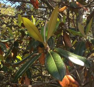 As I walked down Magnolia Allee I saw the trees with new eyes. There were only a few scattered flowers blooming, but the trees displayed an array of leaves that I had never before noticed. I always thought of a tree losing its leaves in the fall, but the magnolias were dropping brown leaves at the same time they were putting out fresh new shoots that would soon become bright green leaves. At one point I stopped to listen to the dropping brown leaves – it sounded like a gentle rain. The magnolias had reminded me of the cycles of nature – life, death, rebirth… and that nature only asks that we “be with” – with eyes open to wonder and grace, and an acceptance of its cycles. Yes, a reminder that all belongs…