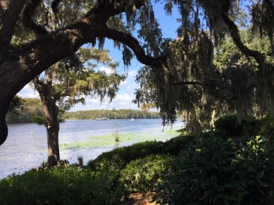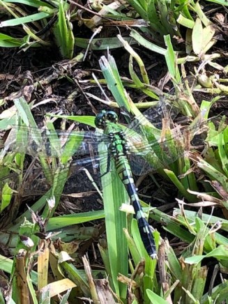 As I stopped along my walk today I was struck by the evidence: what appears still is still moving. The still surface of pond bears the reflection of a waving branch above it, and it receives someone’s air bubbles rising from below. As I stand still, I watch the face of that water wrinkle in the wind. The creek seems to lie still, until I notice the parade of water hyacinths floating toward and by me, fast. Near a cow lily on the bank, a wide blade of grass moves imperceptibly. I crouch closer, and see it bounce ever so slightly under the poise of a dragonfly the same color green, nodding its tail. Tall trees line the wide creek’s opposite bank. They stand erect, no visible sign of movement, until their canopies take flight. A meeting of twenty well-hidden wood storks adjourns suddenly. They flap skyward, circle a while, land again, as branch upon branch bends in welcome. What else, I wonder, is different from how it appears at quick glance? What else can surprise me with delight when I am still, my breath still moving me?