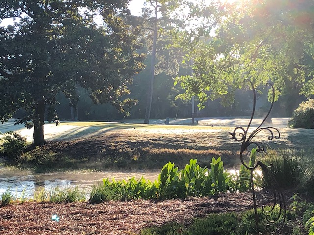 This view from my backyard, with the morning dew….grace. Just a few minutes earlier, I looked out my window onto this scene. A small deer had nestled itself in a pile of strewn pine straw. He was sitting, peaceful. We watched each other a long while, and again, after he got up and sauntered to the back near the water, he turned and made eye contact. We were spellbound together for several minutes, connected, welcoming and welcomed, no masks, no fear. And no urge to get the camera so you’ll just have to take my word for that visitation.