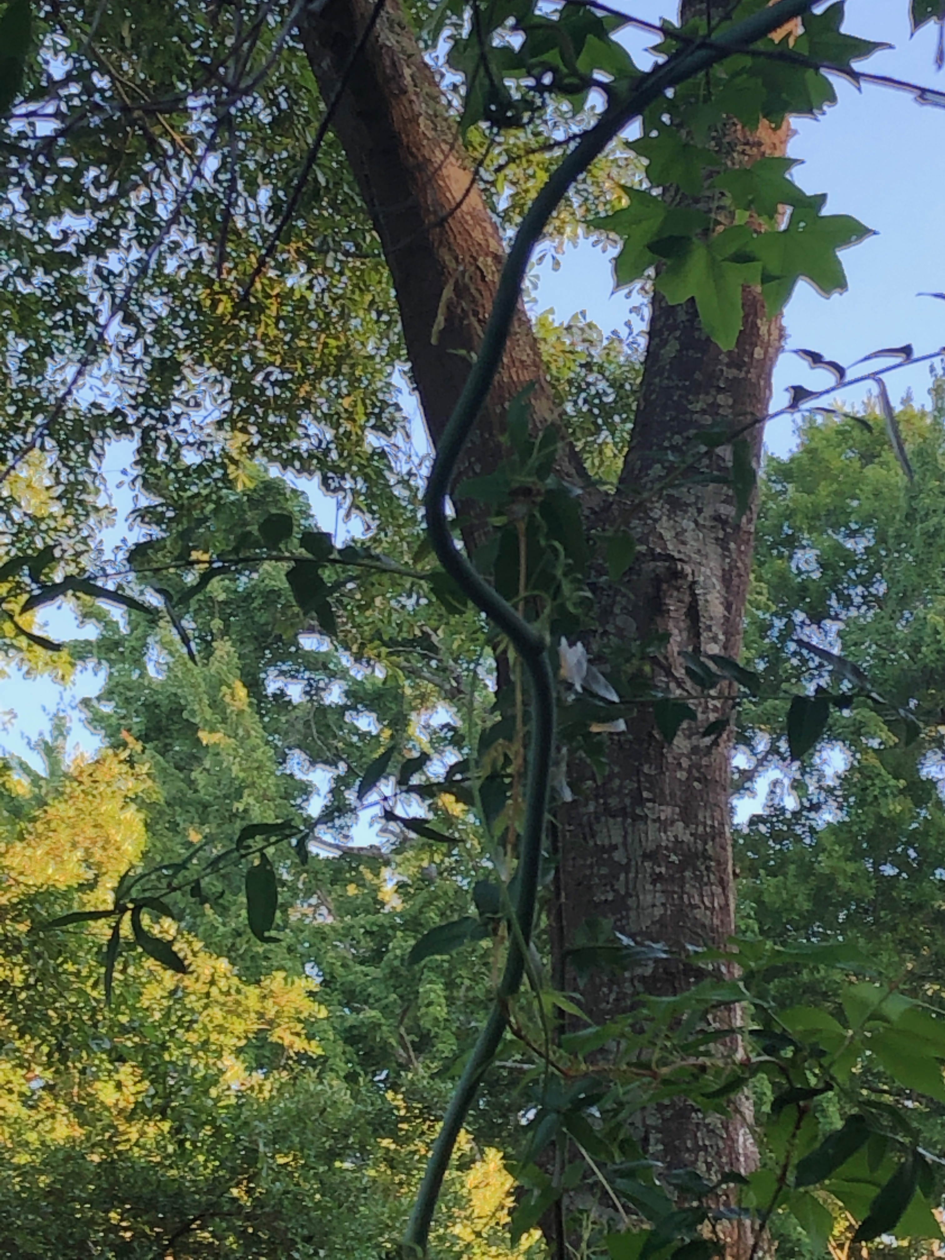 Along undefined paths through a field of trees, the vines kept speaking to me. Individual stalks rising bold, upright, through bushes or unprotected, doing what they’re meant to do. Not able to not grow. Leaning into the light. Up trunks. Comingling with whatever they can reach. Sometimes, tangle with. No one planted them. No one really welcomes them, thick-thorned, and unforgiving as they are. Yet they come back, year after year, as if summoned, at the earliest warming of the ground. Each spot they sprout from they claim. Their root, always ready to generate more life. Can I find their tenacity, their undaunted courage, to thrive in these days? What and who do I reach for to draw me further into the light?