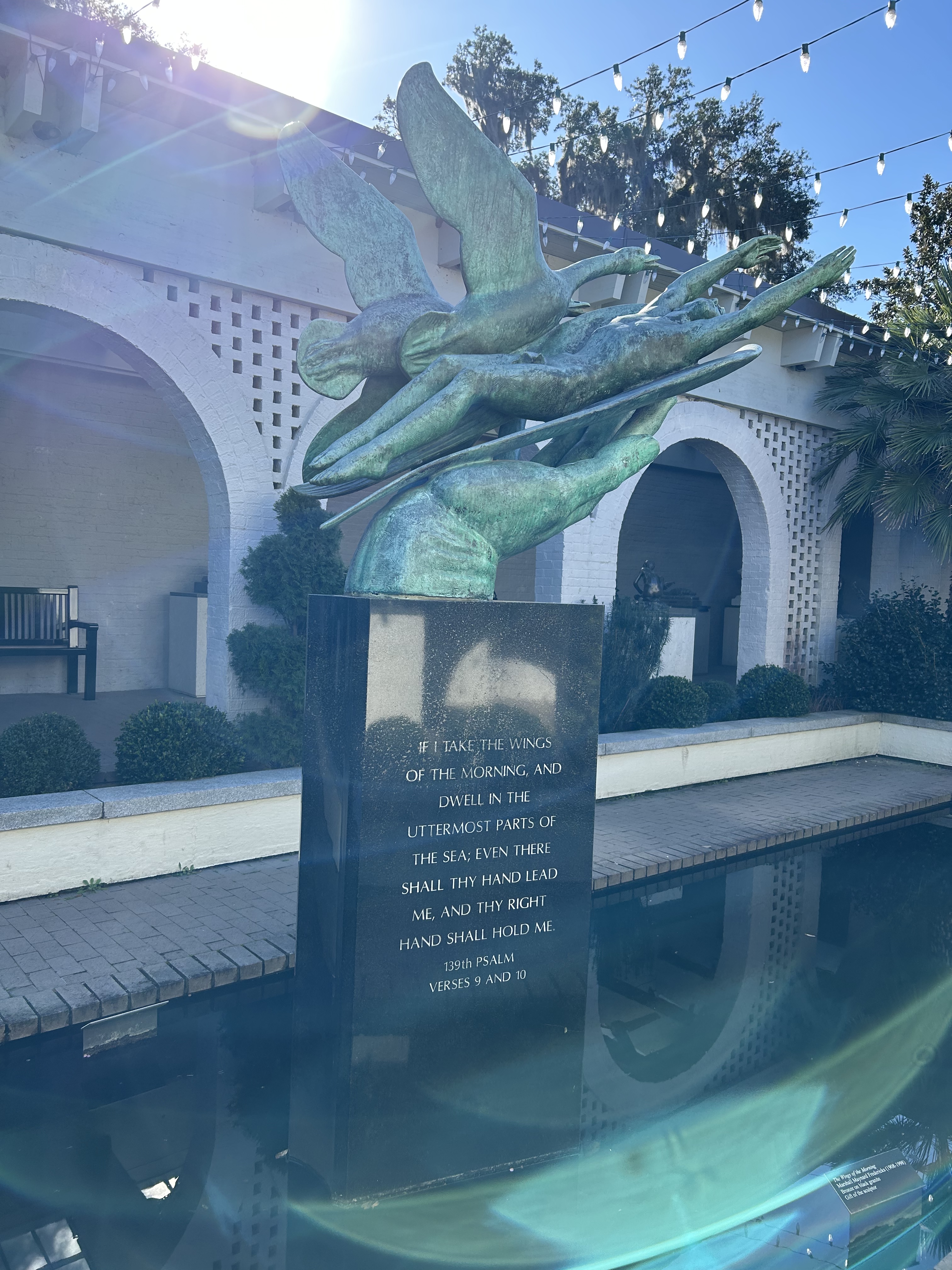 This sculpture reminds me that we are all held in Gods loving hands-lifted up on the wings of angels in our lives.