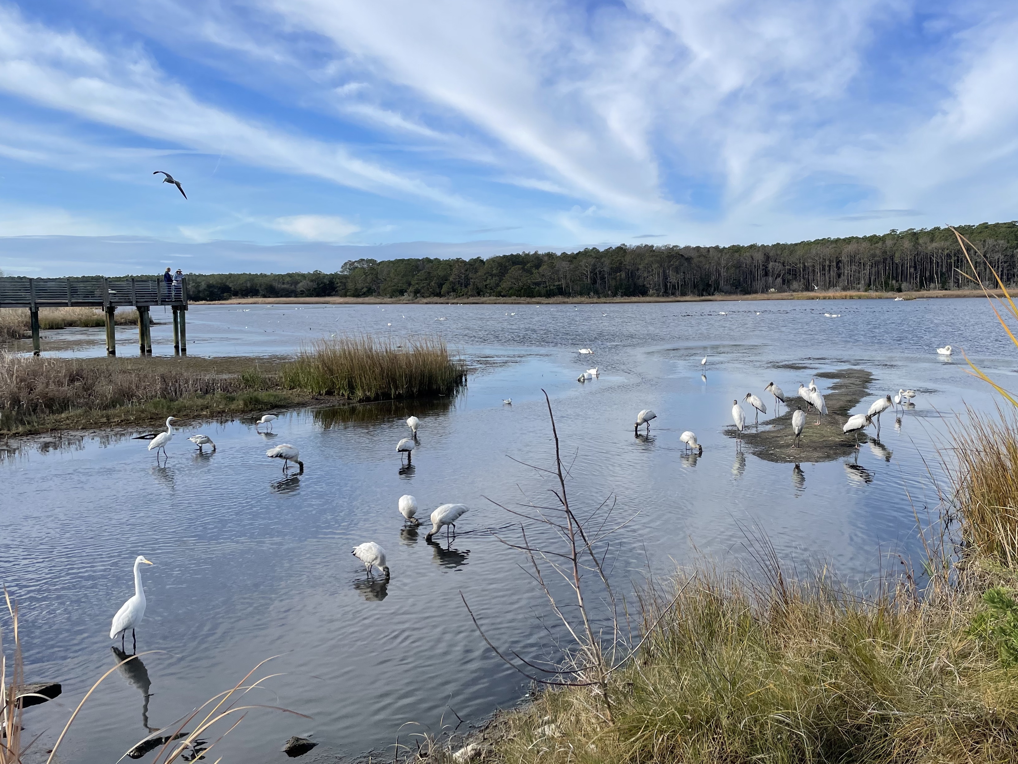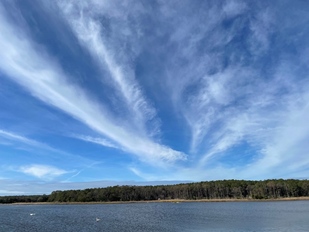 There was an incredible variety of birds today at the causeway, with a fantastic sky as the background for this beauty and aliveness… the multitude of birds being “in the moment” and sharing the plenty of the pond. Enough for all…